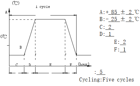 (1) Temperature: -20 ± 2 ℃ (2) Time: 96 hours Water drops shall be removed. |