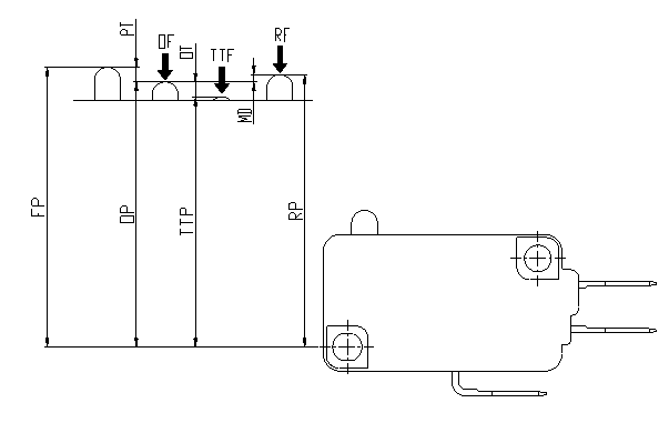 When the force on the transmission element is removed, the action reed produces a reverse action force. When the reverse stroke of the transmission element reaches the critical point of the action of the reed, the reverse action is instantaneously completed. The contact distance of the micro switch is small, the action stroke is short, the pressing force is small, and the on-off is rapid. The movement speed of the moving contact has nothing to do with the movement speed of the transmission element.
