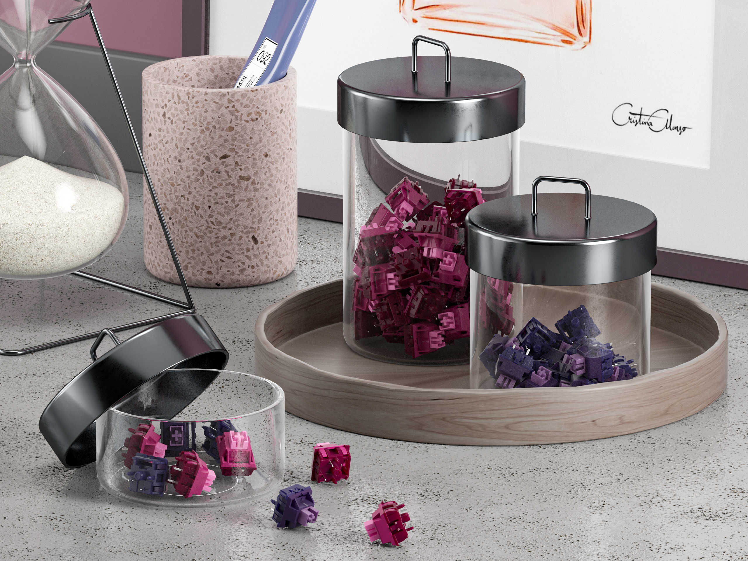 keygeek Switches Mechanical Keyboard purple Key Switch for CIY Sockets SMD 3pin Thin pins Compatible with MX Swit